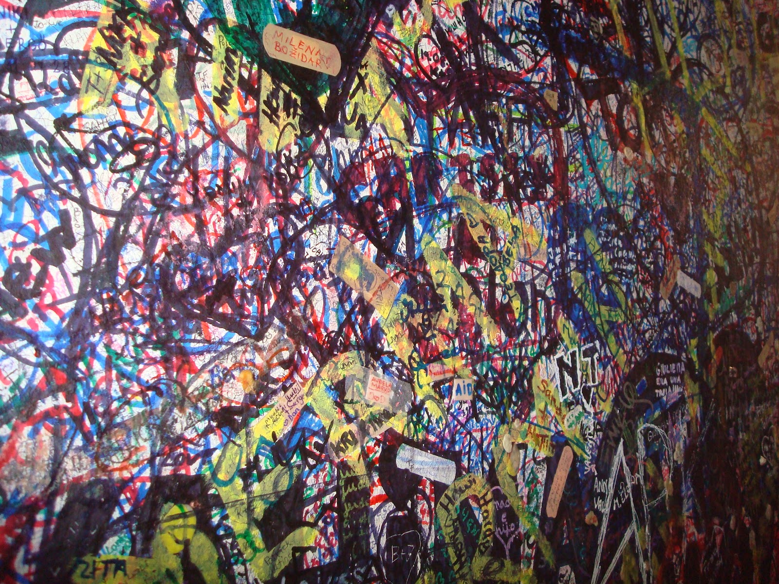The walls on both sides of the entrance were all covered in inc and stickers. According to a superstition if you stick your & your beloved one's names with a gum there you'll love each other forever.