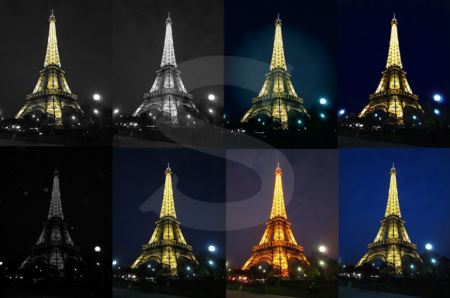 Since it was getting dark, we decided to go back to the Eiffel Tower to take some night pictures of it. It was really marvelous. The best thing I've seen in Paris. I tried pretty much all my camera modes while shooting (I told you, I loved it!) Here's the result: