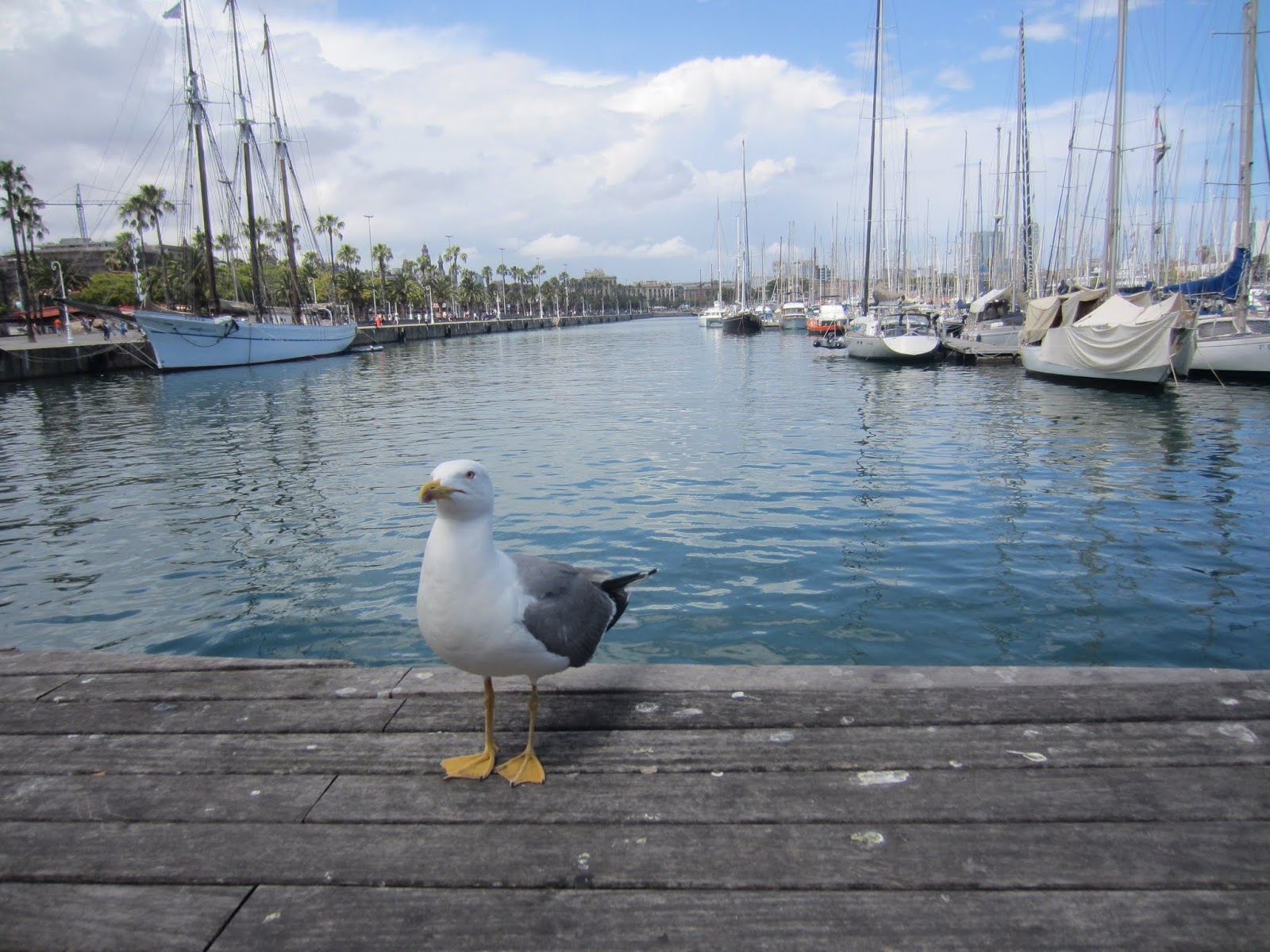 After the aquarium we had some more time to kill so we went back back to the pedestrian bridge on Port Vell, where we found some company.